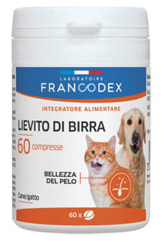 Ricche di vitamine del gruppo B e zinco, le compresse LIEVITO DI BIRRA FRANCODEX sono ideali per la salute della pelle e del pelo dell’animale.