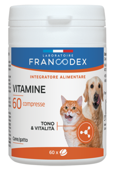 In caso di calo dei livelli di energia, di convalescenza o di affaticamento, le compresse VITAMINE FRANCODEX aiutano l’animale a ritrovare tono e vitalità.