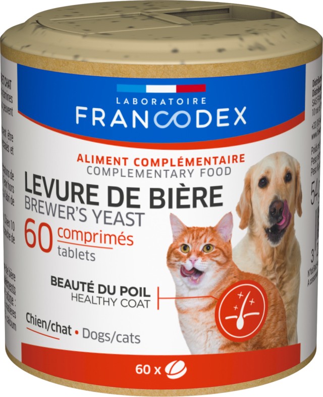 Riches en vitamines B et zinc, les comprimés LEVURE DE BIÈRE FRANCODEX sont bénéfiques pour la peau et le pelage de l’animal.