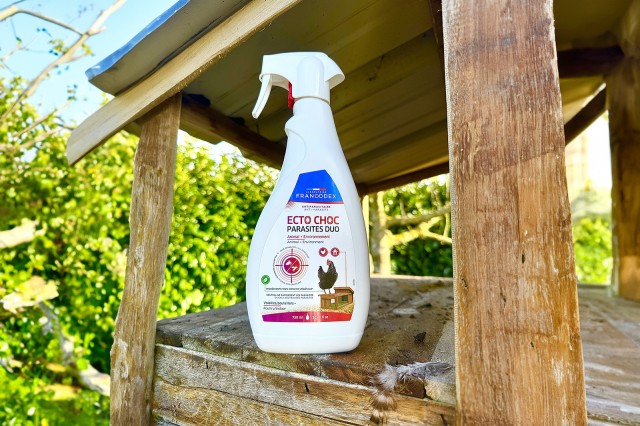 Le spray Ecto Choc Parasites DUO pour la basse-cour en format 750ml est fabriqué en France. Il neutralise les parasites volants et rampants : poux rouge, puces, tiques, moustiques, phlébotomes et mouches !