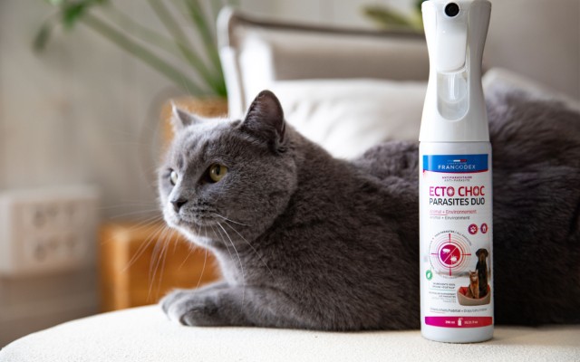 Découvrez notre nouvelle gamme de produits ECTO CHOC, qui agit sur les parasites présents sur l'animal et dans son habitat.