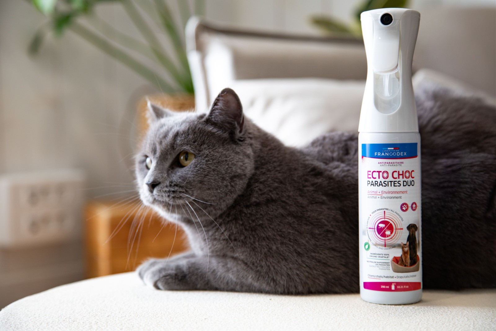 Ciblez et neutralisez les puces, tiques, moustiques, phlébotomes et mouches avec Ecto Choc Parasites