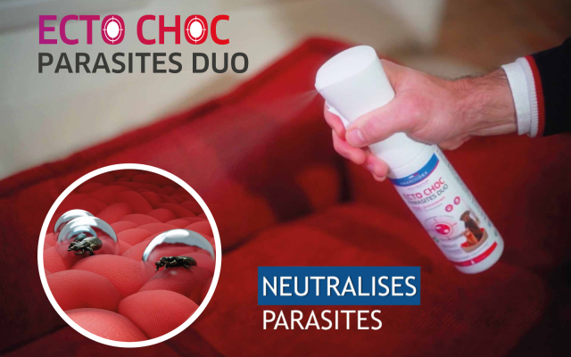 Odkryj nową gamę produktów ECTO CHOC, która działa na pasożyty obecne na zwierzęciu, a także na te znajdujące się w jego otoczeniu, np. na legowisku, w budzie, kennelu etc.